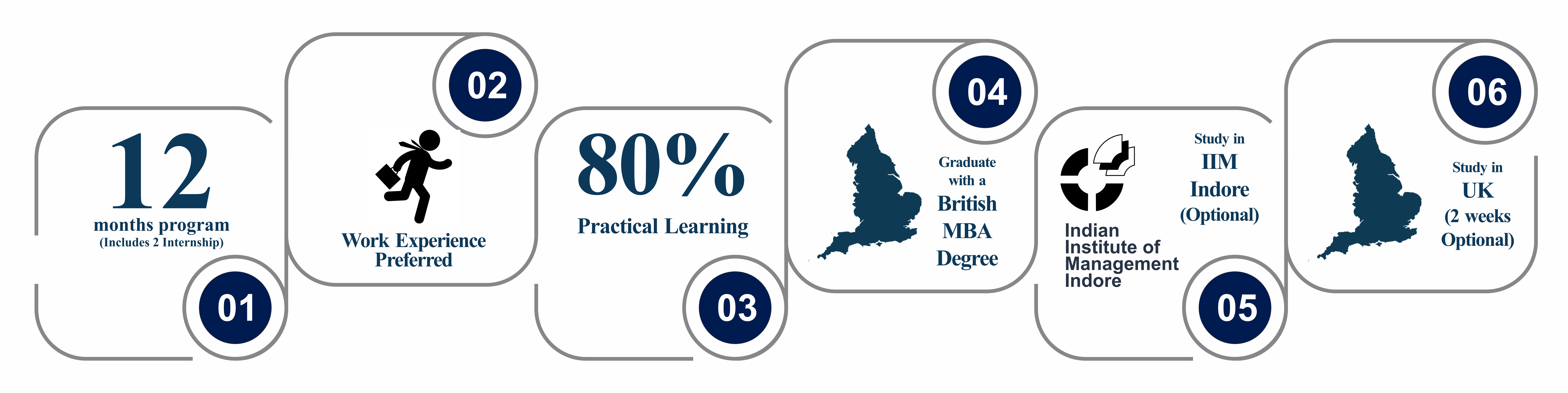 This Global MBA in India is an internationally recognised and respected qualification for managers. The teaching program is aimed at those who are looking to develop their careers and at ‘high flyers’ that need an understanding of all the major functions of business providing generalist knowledge for prospective leaders. In addition to enhancing successful students’ career prospects, the course aims to encourage independent and creative thinkers. This is done by following the UK Quality Assurance Agency guidelines in giving students a ‘strong practical and professional orientation’ differentiating it from other Indian MBA programs.